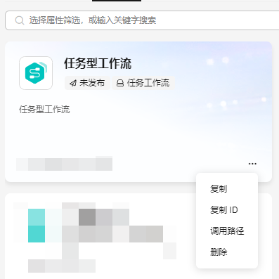 在工作流列表页面,单击工作流右下角的 "..." 图标,再单击“复制ID”,即可完成复制ID操作。