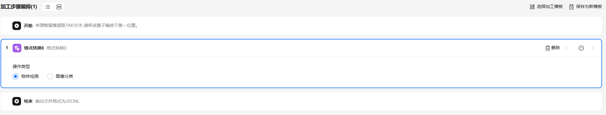 - 在右侧“加工步骤编排”页面配置各算子参数,可拖动右侧“