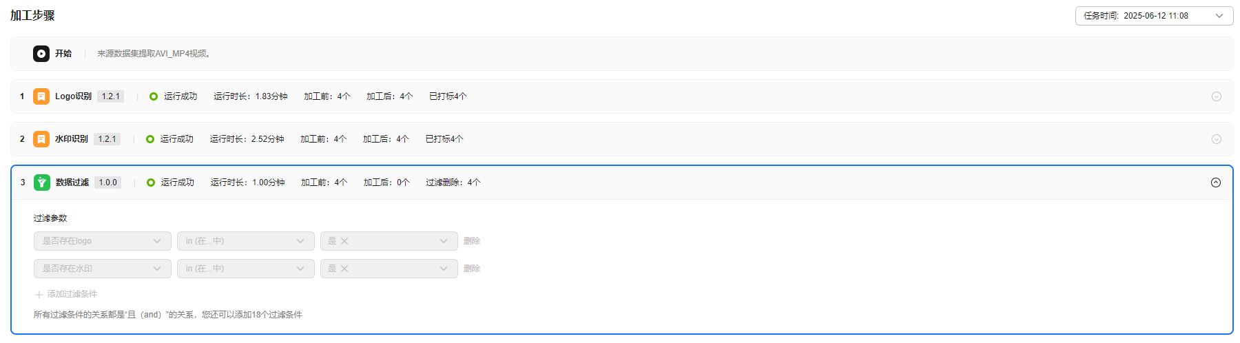 设置过滤存在logo与水印的视频,经算子处理过后。