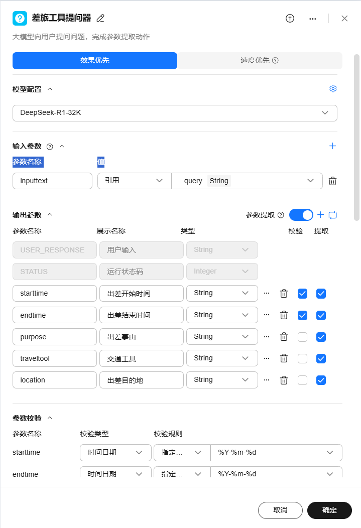 差旅场景包含两个节点:差旅工具提问器和travel_info_tool插件。