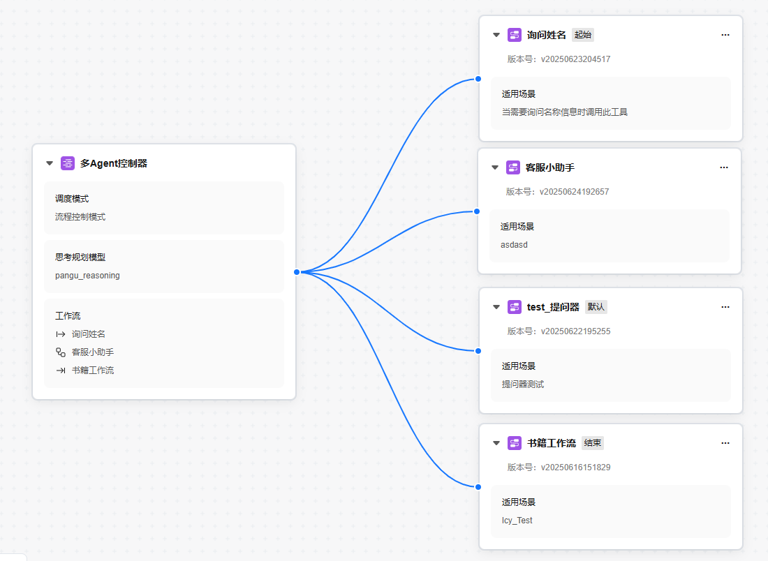 图3 添加起始、默认、结束工作流图4 编排后包含工作流的多智能体应用
