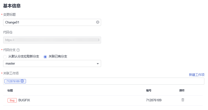 - 单击“新建变更”,进入“基本信息 ”页面,配置相关参数。