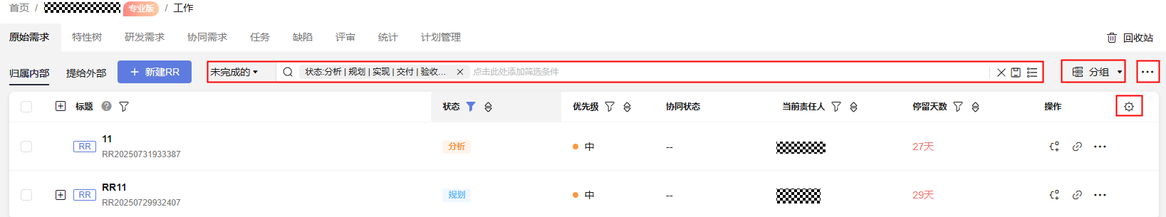 在原始需求列表页中管理原始需求