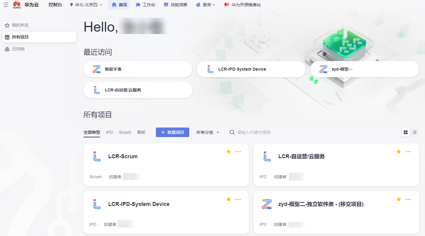 - 单击“前往需求管理”,进入需求管理首页,该页面展示的是当前用户已加入的项目列表。单击项目卡片,可进入指定项目的需求管理页。单击页面左上角