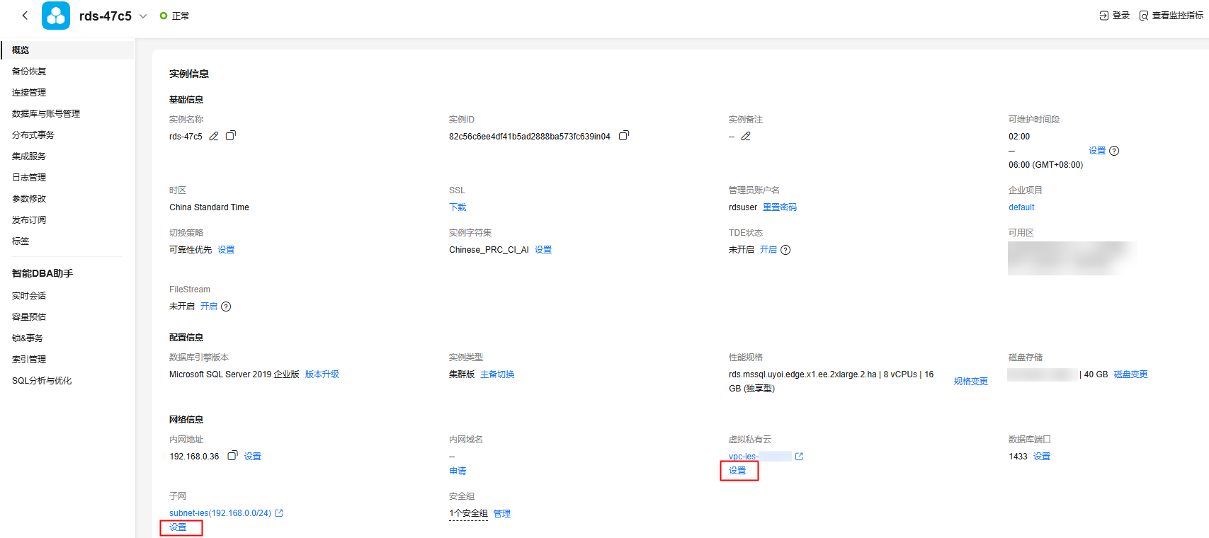 - 修改VPC子网的功能,只在主实例界面上有入口。如需使用该功能,请提交工单申请。