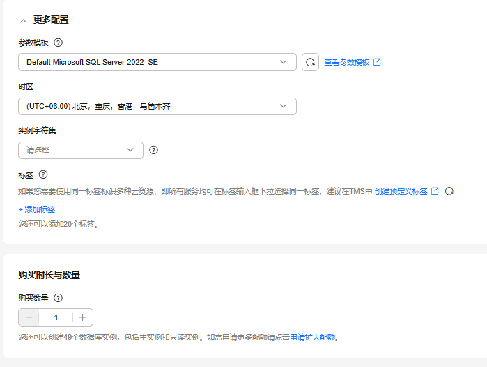 您可以在实例创建完成之后根据业务需要进行调整。具体请参见修改RDS for SQL Server实例参数。