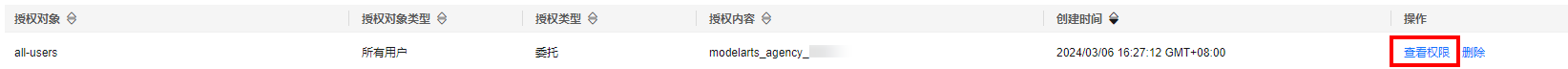 ModelArts提供了添加授权功能,用户可以在ModelArts Standard的权限管理功能中,快速完成委托授权,由ModelArts为用户自动创建委托并配置到ModelArts服务中。