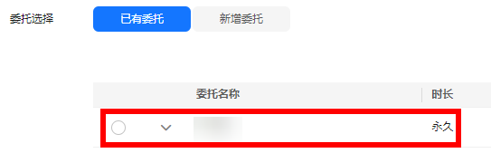 - 如果已获得委托授权,则可以在权限管理页面中查看到已获得的委托授权信息。