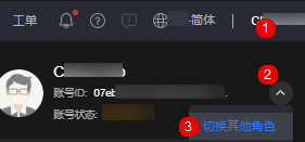 - 委托用户:选择委托名称。使用账号A创建一个权限委托,在此处将该委托授权给账号B拥有的委托。在使用账号B登录控制台时,可以在控制台右上角的个人账号切换角色到账号A,使用账号A的委托权限。