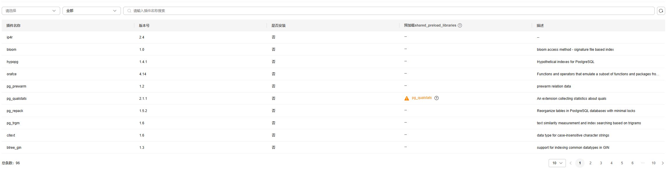 - 在“插件管理”页面,单击“已加载shared_preload_libraries参数值”后的