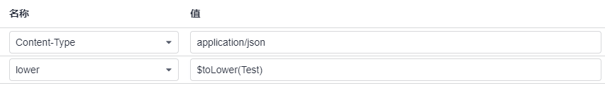 如下图所示,请求头中参数“lower”的值为大写转小写运算函数,函数中的参数A为“Test”。