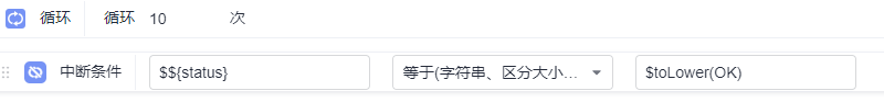 如下图所示,for循环中断条件的目标值为大写转小写运算函数,函数中的参数A为“OK”。