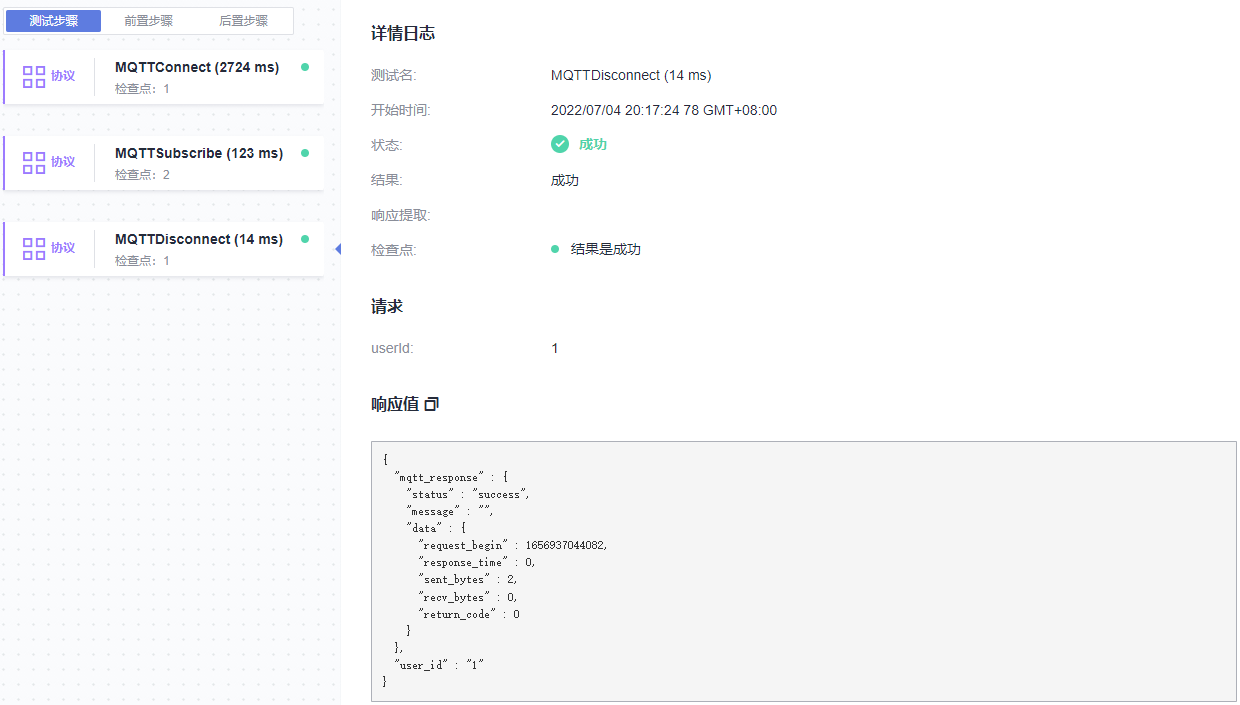 在CodeArts TestPlan接口脚本中调用MQTTDisconnect关键字