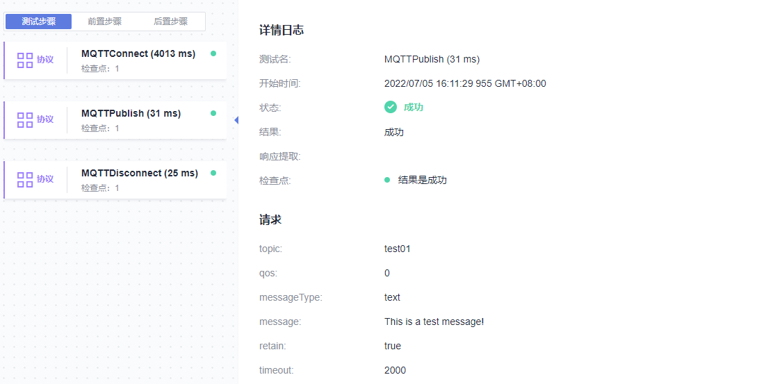 在CodeArts TestPlan接口脚本中调用MQTTPublish关键字