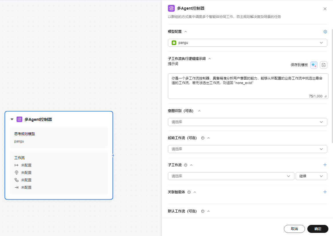 在“多Agent控制器”卡片上,单击鼠标左键,在弹出页面配置参数信息,多Agent控制器参数说明请参考表2。
