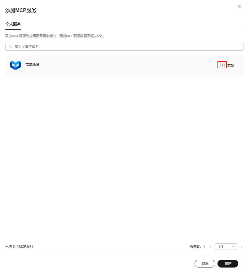 - 在“添加MCP服务”窗口,在“个人服务”中单击目标MCP服务右侧
