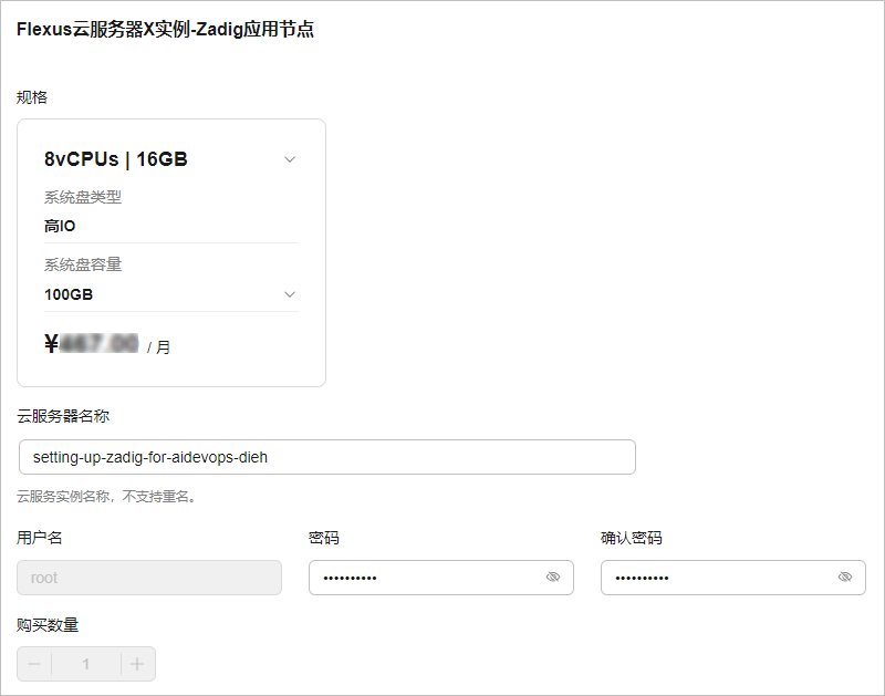 - 设置1台Flexus云服务器X实例配置(Zadig应用节点)。